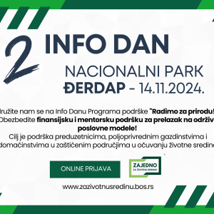 Info dan za program „Radimo za prirodu” održan na Goliji Foto: Canva/Milan VirijevicDrugi ciklus programa podrške Radimo za prirodu: Pokretanje i unapređenje poslovnih poduhvata u zaštićenim područjima Srbije Održan sastanak izabranih posredničkih organizacija i regionalnog EU resurs centra ENECA Mogućnost finansiranja održivih poslovnih inicijativa u Nacionalnom parku Đerdap
