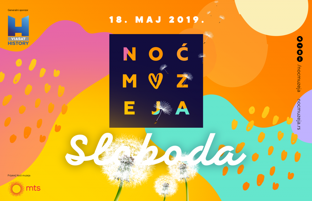 Tema ovogodišnje noći muzeja je Sloboda,pa je njeno osvajanje kroz Riznicu književnosti omogućeno u Književno-memorijalnoj galeriji Sremac/Miljković. Osim čitanja poezije Branka Miljkovića i premijere njegove poetske drame „Maldoror iks“ u izvođenju Trupe Književna boemija, posetioci će moći da vide književne i pozorišne plakate Ivana Mišića. U Narodnom pozorištu slobodu će kroz vizuelni sadržaj prikazati studenti sa Odseka za grafički dizajn Fakulteta digitalnih umetnosti. Oni će, po rečima organizatora, zainteresovanima predstaviti simbiozu moderne digitalne umetnosti sa tradicionalnim likovnim tehnikama.