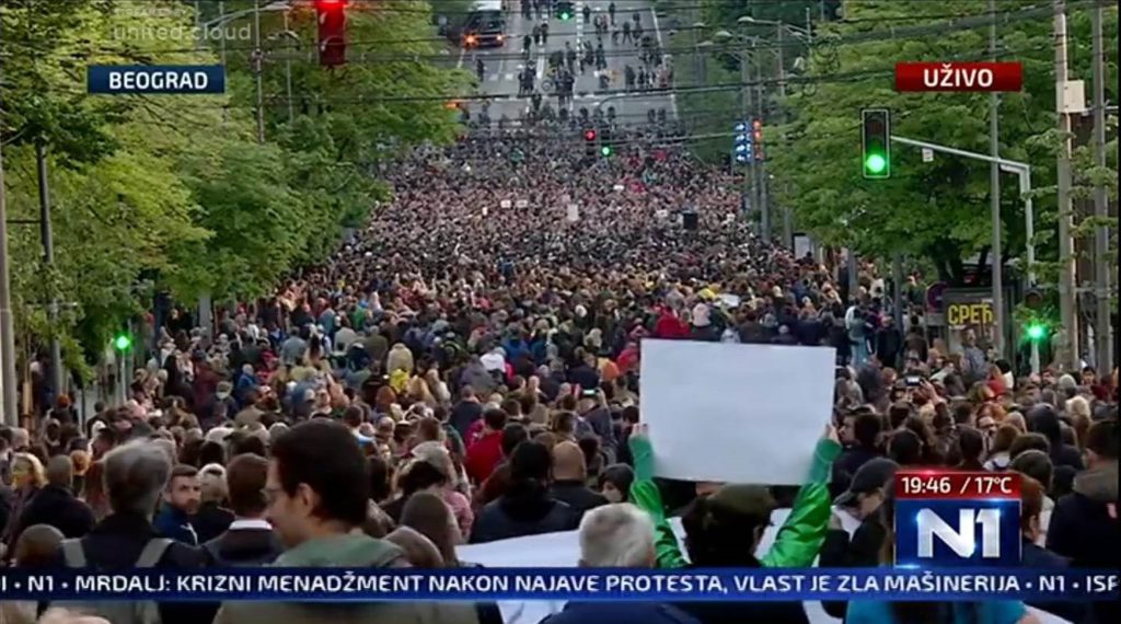 Podsetimo, prošlog petka je u Beogradu održan šesti po redu protest “Srbija protiv nasilja”. Povod za proteste su dva masovna ubistva koja su se početkom maja desila u Beogradu. Ukoliko ne budu ispunjeni zahtevi protesta – kao što su smena REM-a, oduzimanje nacionalnih frekvencija medijima koji promovišu nasilje, ali i smena ministra policije Bratislava Gašića, organizatori su najavili mogućnost radikalizacije protesta.