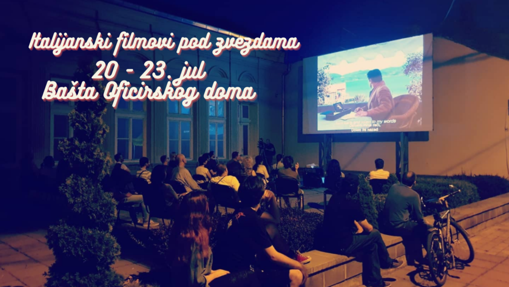 Svi oni koji vole italijansku kinematografiju imaće priliku da od 20. do 23. jula u bašti Oficirskog doma u Nišu pogledaju filmove iz ciklusa “Italijanski filmovi pod zvezdama”. Sve projekcije počinju od 21 sat, a ulaz je slobodan. U slučaju lošeg vremena, filmovi će biti prikazani u velikoj sali Oficirskog doma.