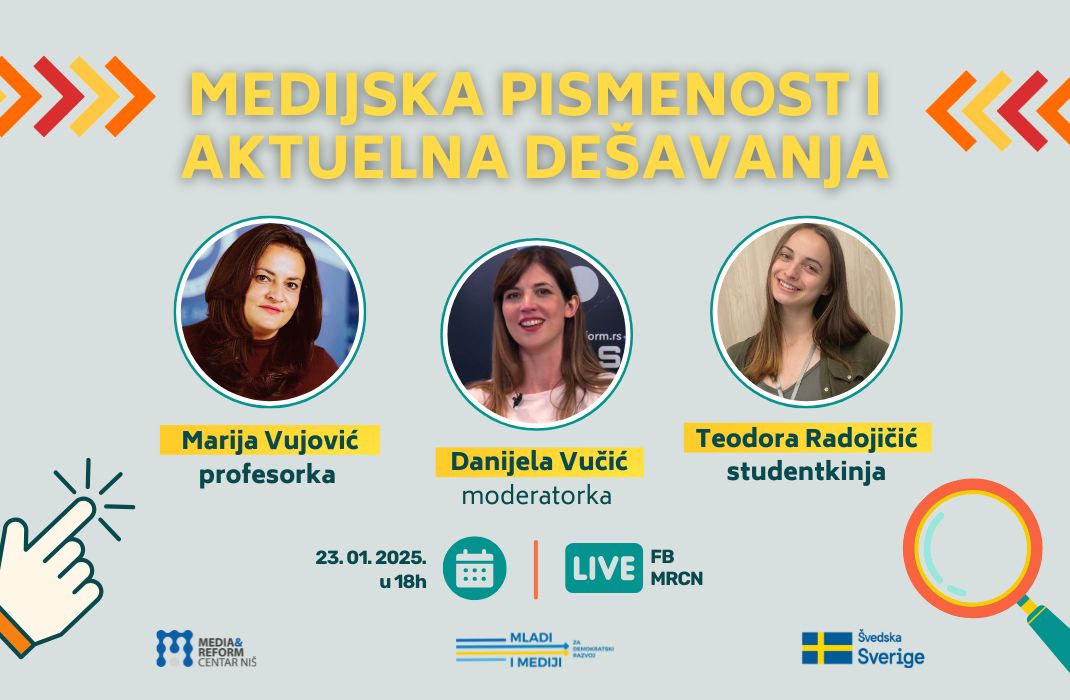 U četvrtak 23. januara od 18 sati u Media i reform centru Niš biće održan panel posvećen temi medijske pismenosti.
