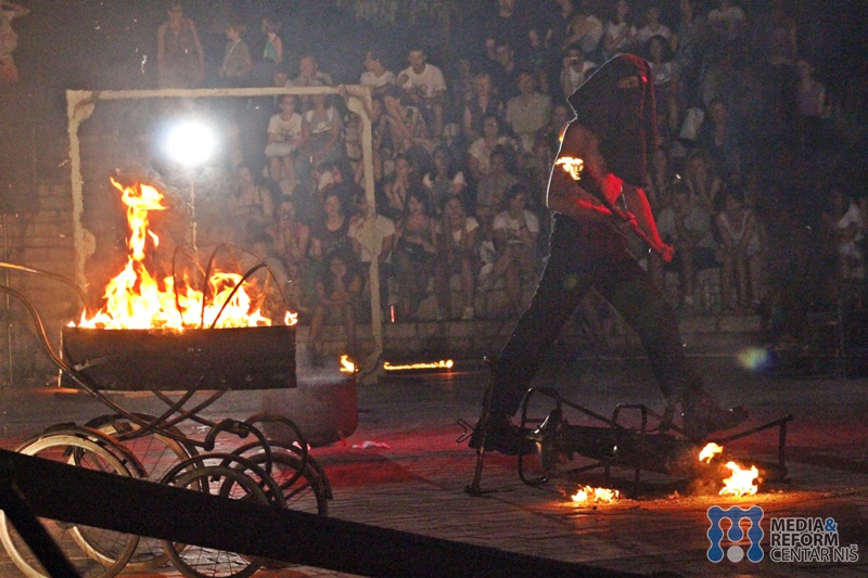 Sinoć je defileom volontera od niške Tvrđave do Amfiteatra, predstavama „Žene DADE – jedna moguća izložba“, Dah Teatra i „Gernika“, teatra „En Vol“ sa Sardinije, otpočeo program ovogodišnjeg Nišvila. Dvadesetčetvorogodišnji niški violinista Dimitrije Mandić jedan je od troje domaćih umetnika koji su učestvovali u predstavi “Gernika”.