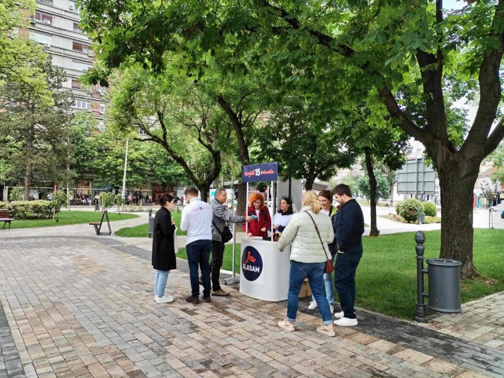 Prema istraživanjima samo 15 minuta je glasaču potrebno da ode do biračkog mesta da iskoristi svoje pravo. Vaših 15 minuta, naših 4 godine. Neki kažu da je to obaveza birača. To nije njihova obaveza, to je njihovo pravo i apelujemo na glasače da to pravo iskoriste – rekao je koordinator kampanje Uroš Tasković.