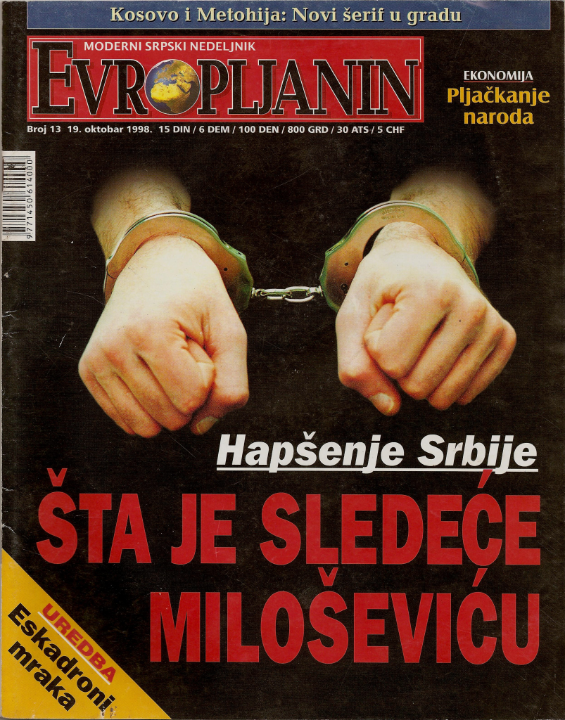 “Šta je sledeće Miloševiću” – pisalo je crvenim slovima ispod ilustracije ruku uhvaćenih lisicama na naslovnoj strani nedeljnika Evropljanin 19. oktobra 1998. godine. U autorskom tekstu koji tada potpisuju Slavko Ćuruvija i Aleksandar Tijanić, u jednom od retkih medija koji tih godina nije bio u službi propagande vlasti, autorski dvojac obavestio je tadašnjeg predsednika Slobodana Miloševića da je u Jugoslaviji izveden državni udar, budući da su njegovi saradnici usvojili protivustavnu Uredbu i uveli vanredno stanje.