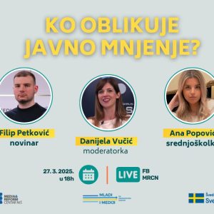 Srednjoškolci koje zanima tema medijske pismenosti i žele da “odmere znanje” sa vršnjacima iz cele Srbije, mogu to uraditi na Školskom turniru medijske pismenosti. Turnir se održava onlajn, a svi koji žele mogu se prijaviti do 20. aprila.