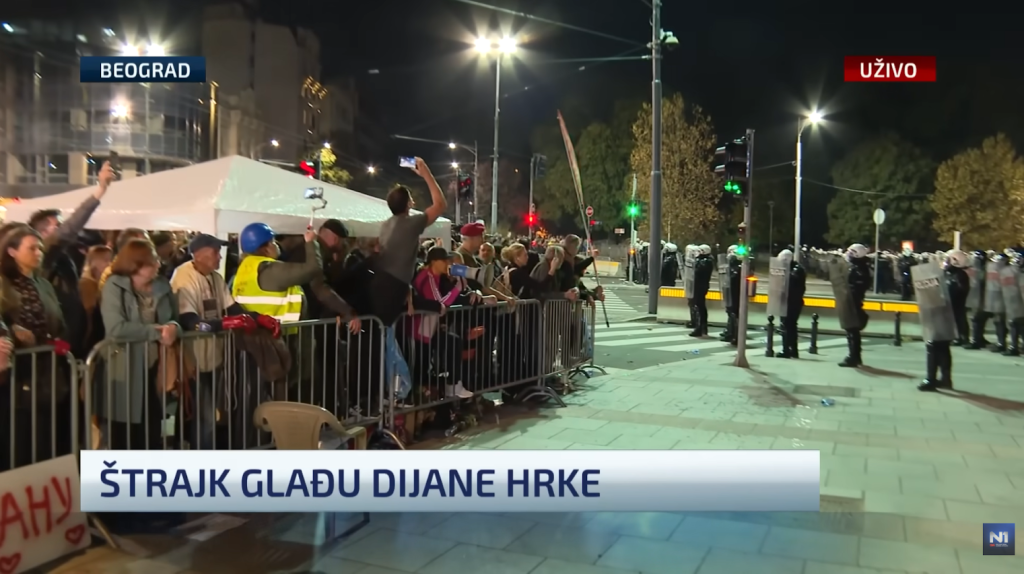Dijana Hrka se od početka studentskih protesta i blokada nalazi na ulicama i učestvuje u protestima. Kao i studenti u blokadi i pobunjeni građani, Hrka traži odgovornost za one koji su krivi za smrt njenog sina. Odluku da stupi u štrajk glađu donela je godinu dana od tragedije i nakon što nijedno suđenje ovim povodom nije održano.