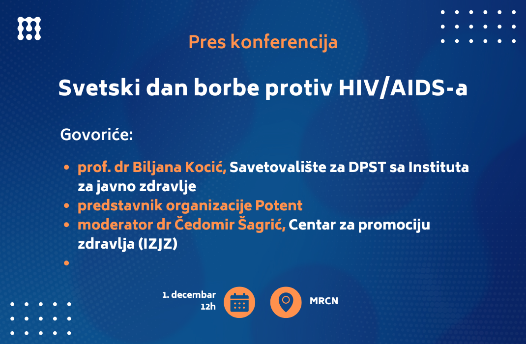 U ponedeljak 1. decembra u 12h biće održana pres-konferencija povodom obeležavanja Svetskog dana borbe protiv HIV/AIDS-a. Organizatori su Institut za javno zdravlje Niš (IZJZ) i organizacija Potent.