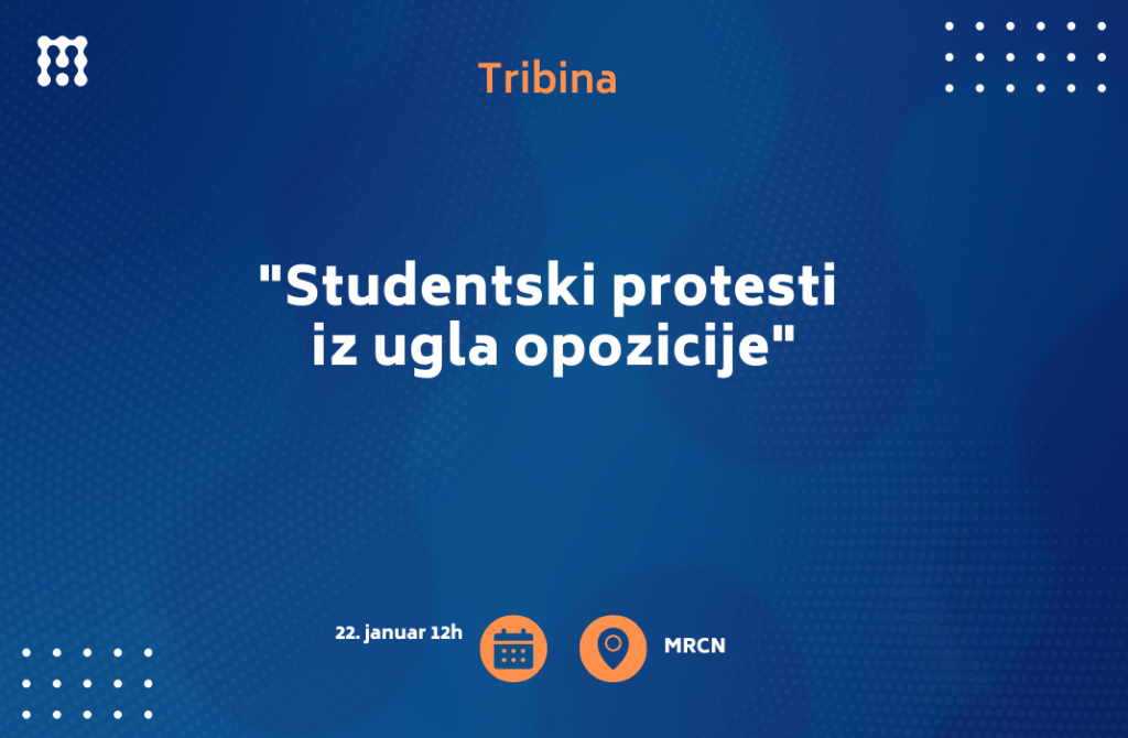 U sredu 22. januara od 12 sati u Media i reform centru Niš biće održana tribina “Studentski protesti iz ugla opozicije” u organizaciji Pokreta mladih Niš.